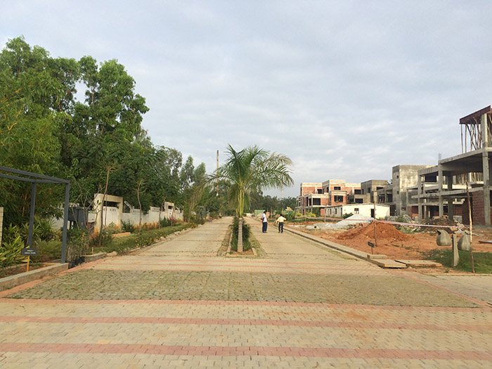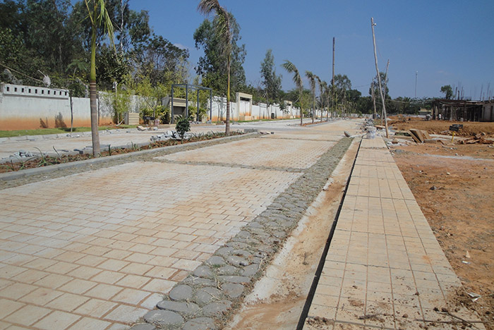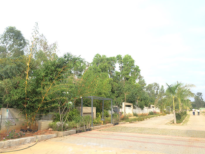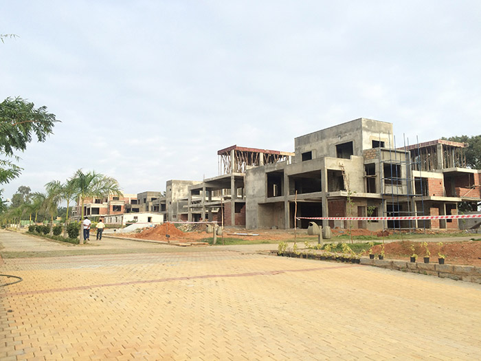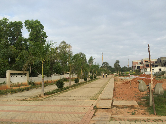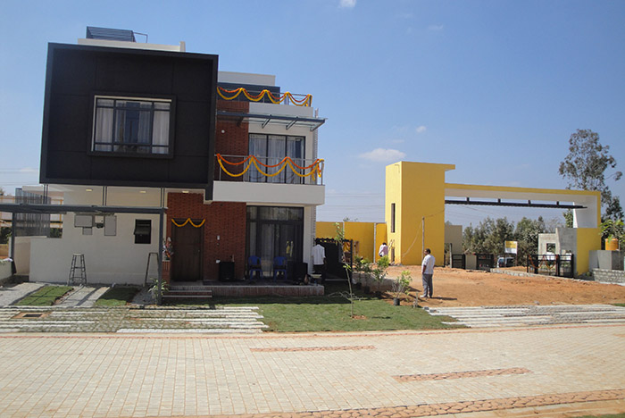 MV Sunridge in Yelahanka, North Bangalore, offers villa living of a unique kind. Sunridge is a fusion of gazebo comforts with European architecture. Over 25 villas that come in 3 different plot sizes are built according to Vaastu principles. You get east-facing and west-facing Sunridge villas abutting on 40-feet wide avenues that end in cul-de-sacs that create cosy nooks in the layout. Clad in luxuriant greenery, MV Sunridge looks an oasis in the middle of desert. It is an extended park complete with trees and a variety of plants.