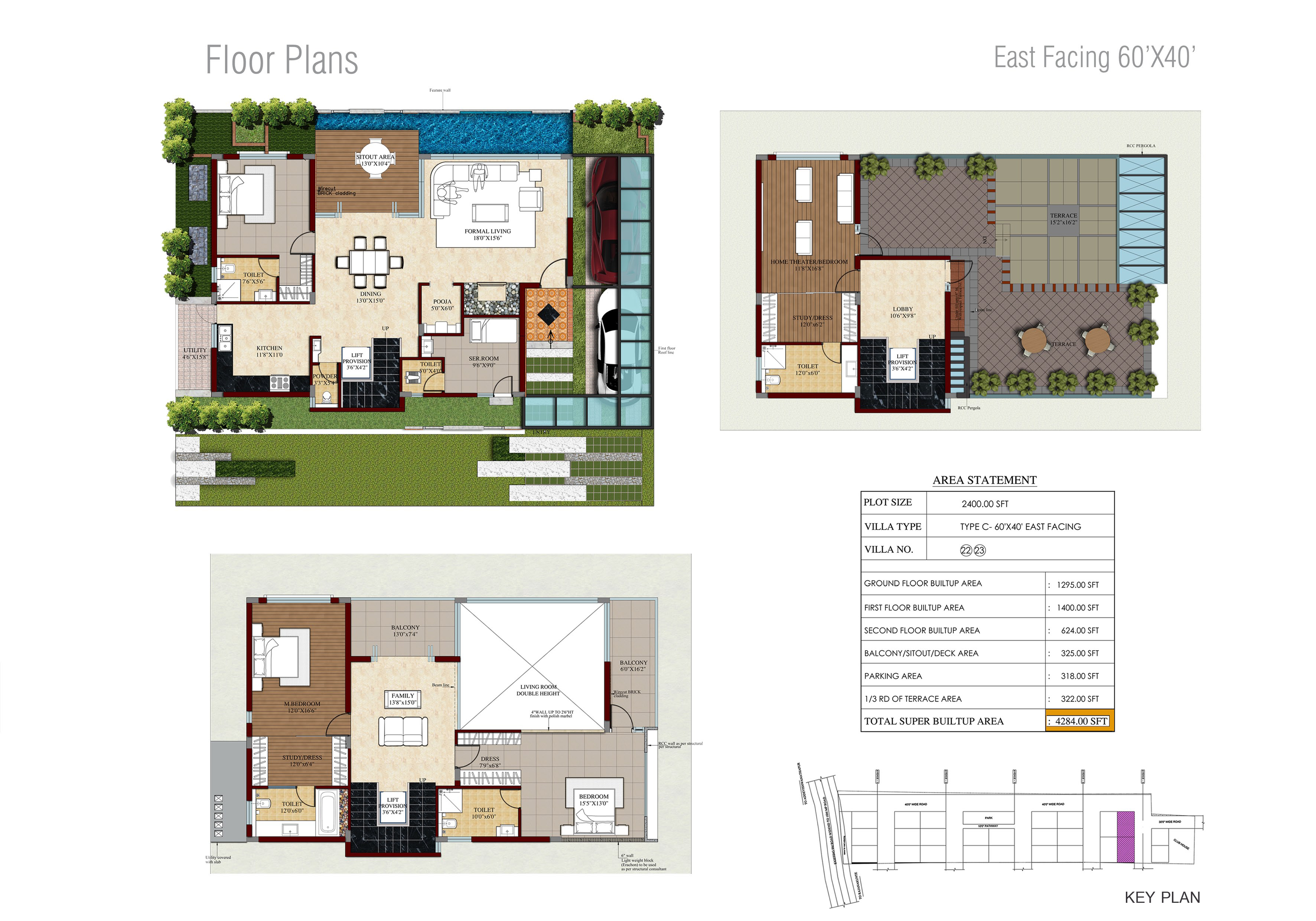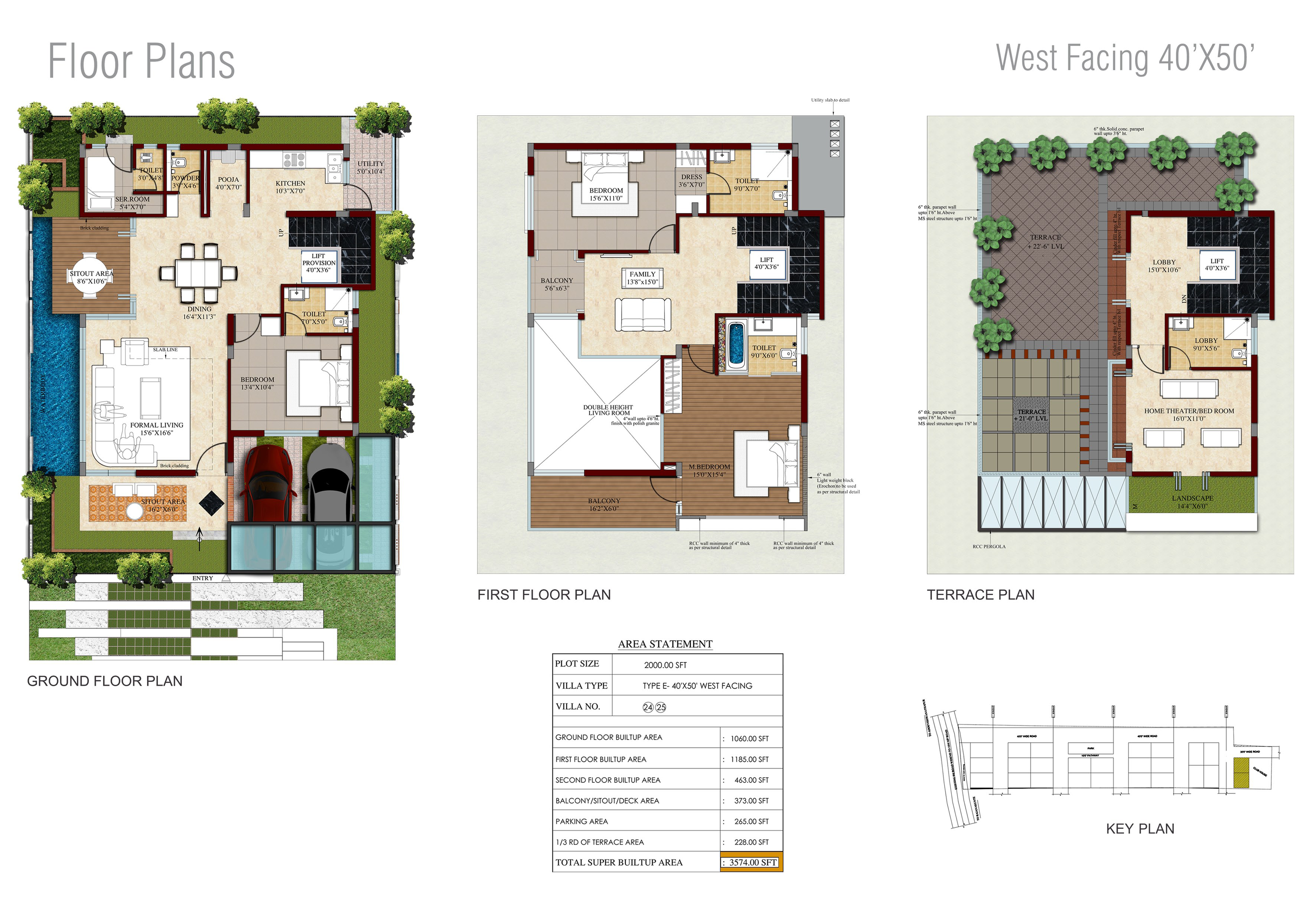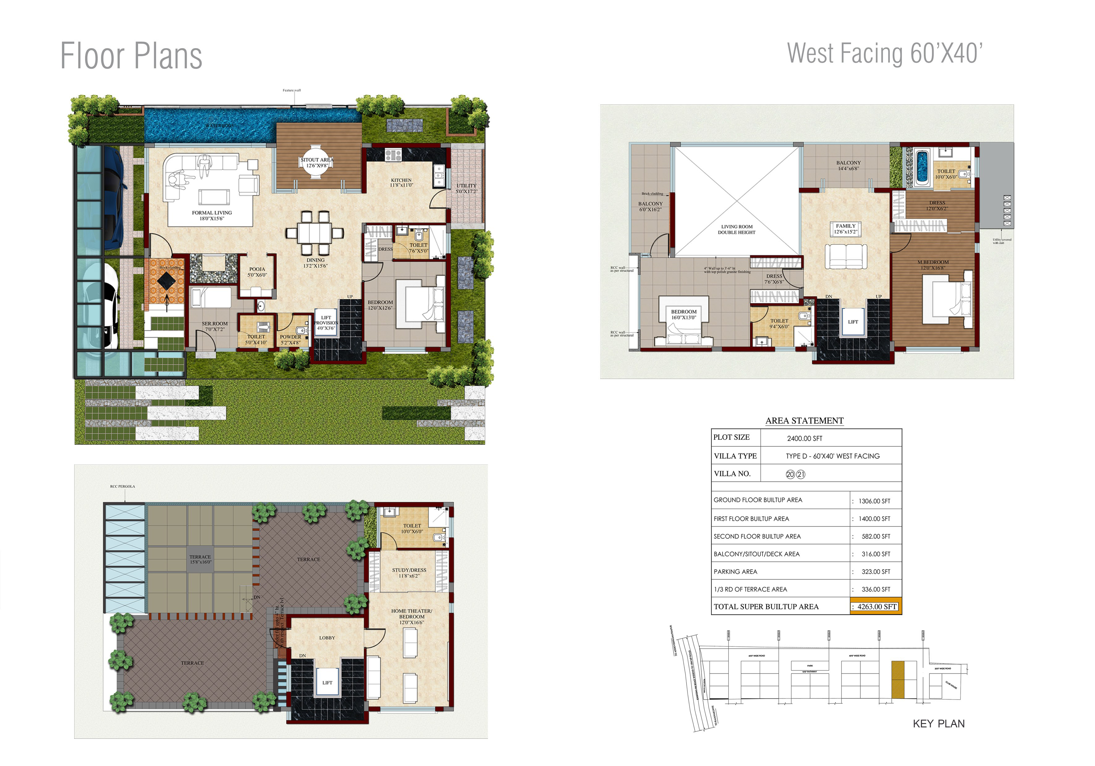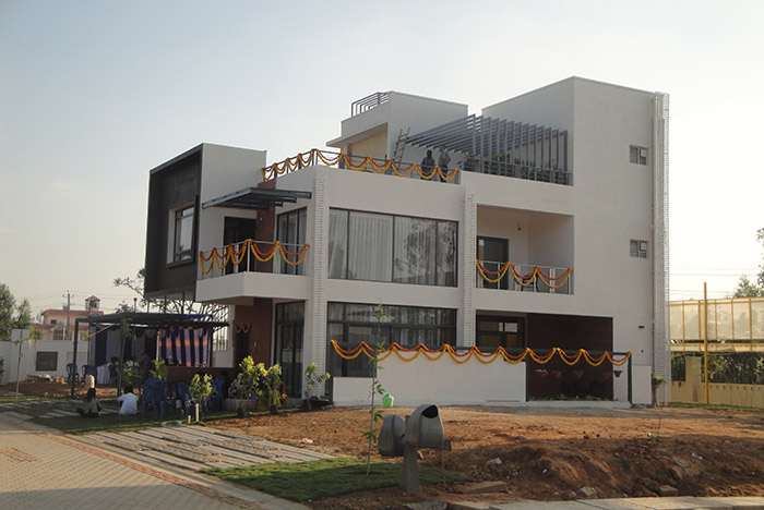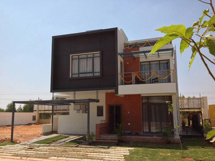Sundridge villas are a seamless combination of urban efficiency and summer house comfort. The style is reminiscent of modern European style of construction and architecture. At Sundridge you have a choice of 25 elegant villas in three plot sizes. As per vaastu, the main entrance of the layout is on the north-west corner, every villa is either facing east or west and the water body and open areas are on the north-east corner. The main approach road is forty feet wide and the avenues branching off to the villas are thirty feet wide. All avenues end in a cul-de-sac creating quiet cosy nooks within the layout.